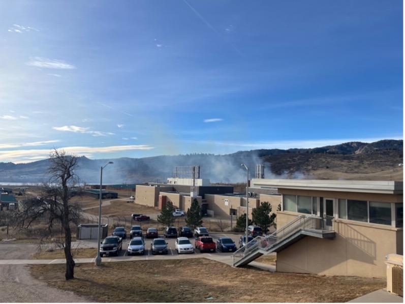 Smoke from a small grass fire near the CSU Foothills campus on December 18.